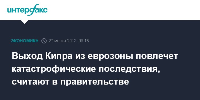 Выход Кипра из еврозоны повлечет катастрофические последствия, считают в правительстве