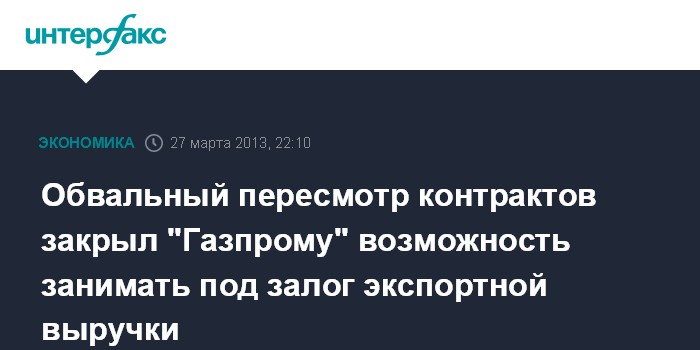 Обвальный пересмотр контрактов закрыл "Газпрому" возможность занимать под залог экспортной выручки