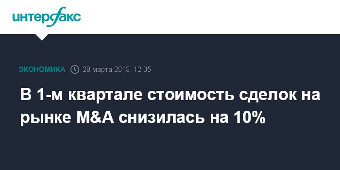 Вместе с тем, по данным, собранным агентством Bloomberg, с 1 января по 27 марта объем слияний и поглощений в мире сократился на 4,4% по сравнению с первым кварталом 2012 года и на 36% относительно октября-декабря и составил $461 млрд. При этом март 2013 года, вероятно, станет худшим месяцем для рынка M&A более чем за три года.