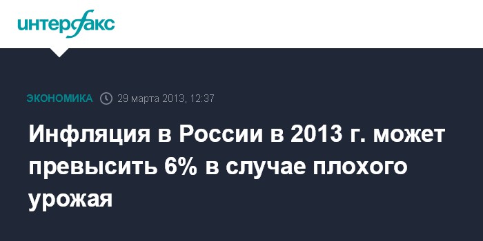 Инфляция в России в 2013 г. может превысить 6% в случае плохого урожая