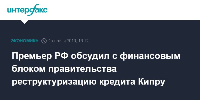 Премьер РФ обсудил с финансовым блоком правительства реструктуризацию кредита Кипру