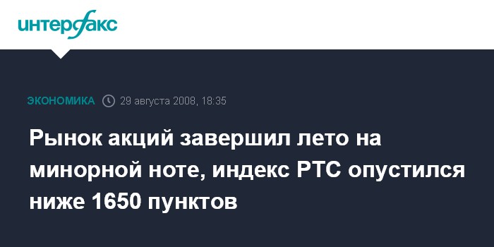 Рынок акций завершил лето на минорной ноте, индекс РТС опустился ниже 1650 пунктов