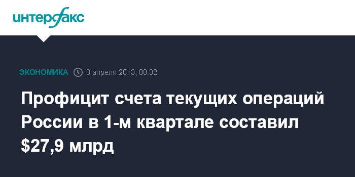Профицит счета текущих операций России в 1-м квартале составил $27,9 млрд