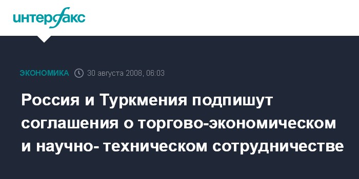 Россия и Туркмения подпишут соглашения о торгово-экономическом и научно- техническом сотрудничестве