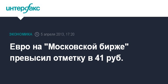 Евро на "Московской бирже" превысил отметку в 41 руб.