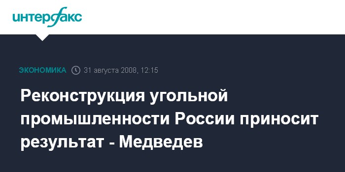 Реконструкция угольной промышленности России приносит результат - Медведев