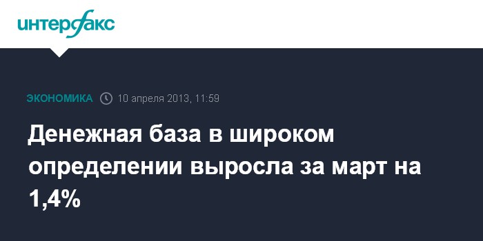 Денежная база в широком определении выросла за март на 1,4%