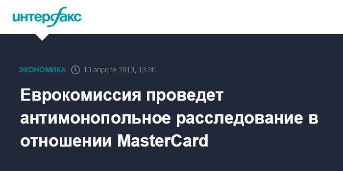 10 апреля. FINMARKET.RU - Еврокомиссия начала антимонопольное расследование в отношении MasterCard Inc., касающееся, в частности, операций по картам, совершаемых в ЕС иностранцами, пишет газета The Wall Street Journal. Аналогичное расследование проводится Еврокомиссией в отношении Visa Europe.
