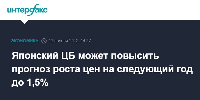 12 апреля. FINMARKET.RU - Банк Японии может повысить прогноз инфляции на следующий год. Как сообщает, агентство Bloomberg со ссылкой на источник, знакомый с ситуацией, уже 26 апреля японский ЦБ может изменить на 1,5% с 0,9% прогноз роста потребительских цен без учета свежих продуктов питания на 2014 финансовый год.