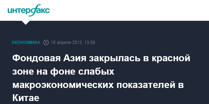 15 апреля. FINMARKET.RU - Торги на фондовых площадках Азиатско-Тихоокеанского региона прошли в понедельник в красной зоне после публикации сразу нескольких слабых макроэкономических показателей в Китае, сообщает агентство Bloomberg.