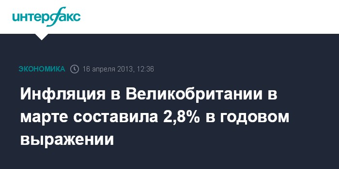 16 апреля. FINMARKET.RU - Инфляция в Великобритании в марте 2013 года в годовом выражении осталась на уровне февральской и составила 2,8%, свидетельствуют данные Национального статистического управления страны. Такая инфляция является максимальной за десять месяцев.
