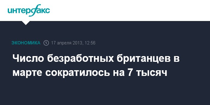 17 апреля. FINMARKET.RU - Число граждан Великобритании, получающих пособие по безработице, сократилось в марте 2013 года на 7 тыс., до 1,53 млн человек, свидетельствуют данные Национального статистического управления (ONS) страны.