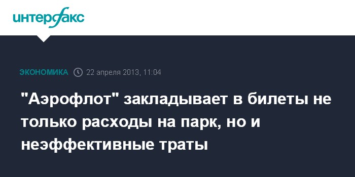 Москва. 22 апреля. INTERFAX.RU - ОАО "Аэрофлот" закладывает в стоимость перевозок не только затраты на обновление парка, но и неэффективные расходы, решила Счетная палата.