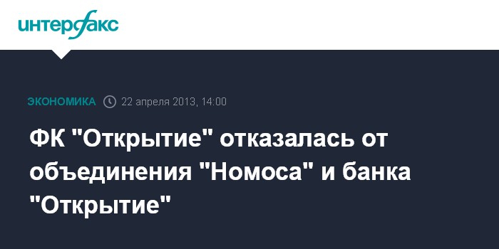 ФК "Открытие" отказалась от объединения "Номоса" и банка "Открытие"