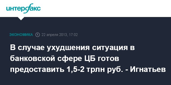 В случае ухудшения ситуация в банковской сфере ЦБ готов предоставить 1,5-2 трлн руб. - Игнатьев