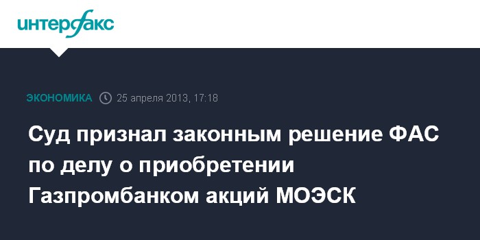 Суд признал законным решение ФАС по делу о приобретении Газпромбанком акций МОЭСК