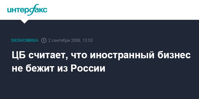 Москва. 2 сентября. INTERFAX.RU - Иностранный бизнес не бежит из РФ, несмотря на неспокойное состояние финансовых рынков, а доля иностранного капитала в российской банковской системе будет расти, как и планировалось, заявил директор департамента лицензирования деятельности и финансового оздоровления кредитных организаций Банка России Михаил Сухов на пресс-конференции в центральном офисе "Интерфакса".