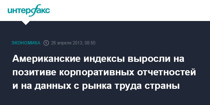 Американские индексы выросли на позитиве корпоративных отчетностей и на данных с рынка труда страны