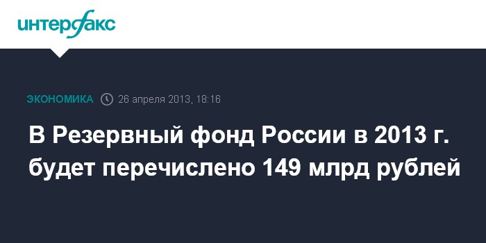 В Резервный фонд России в 2013 г. будет перечислено 149 млрд рублей