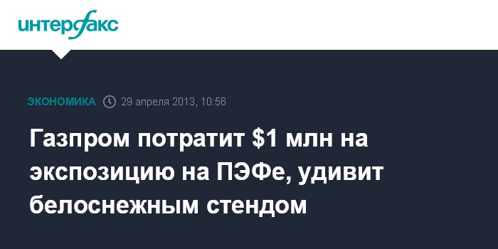 Москва. 29 апреля. INTERFAX.RU - "Газпром" потратит до 29,8 млн рублей с НДС на строительство стенда на Петербургском международном экономическом форуме в этом году, выставка которого давно стала ярмаркой тщеславия российских госкомпаний.