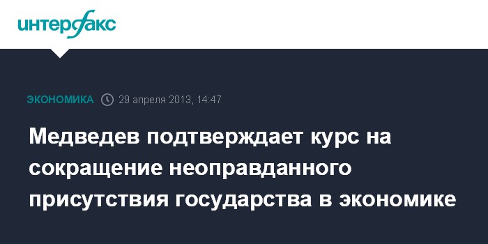 Москва. 29 апреля. NTERFAX.RU - Правительство России намерено продолжить сокращение неоправданного присутствия государства в экономике, заявил премьер-министр Дмитрий Медведев.