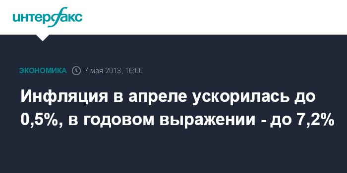 В годовом исчислении (апрель 2013 года к апрелю 2012 года) инфляция ускорилась до 7,2% с 7% в марте текущего года.