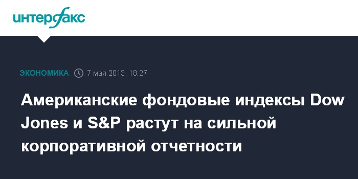 7 мая. FINMARKET.RU - В ходе торгов во вторник американские фондовые индексы Dow Jones Industrial Average и Standard & Poor's 500 растут на сильной корпоративной отчетности, отмечает Bloomberg.