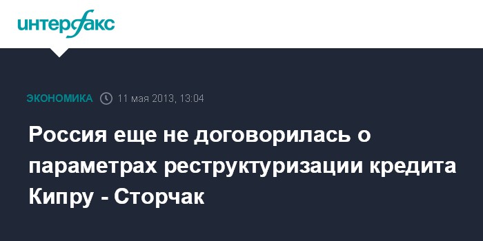 Стамбул. 11 мая. INTERFAX.RU - Россия еще не договорилась о параметрах реструктуризации кредита Кипру на 2,5 млрд евро, заявил журналистам замминистра финансов РФ Сергей Сторчак.