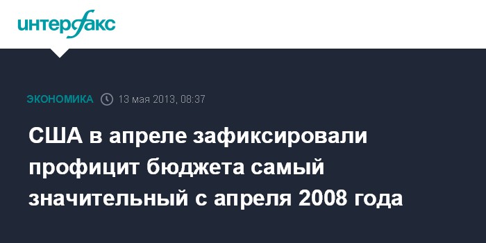 США в апреле зафиксировали профицит бюджета самый значительный с апреля 2008 года