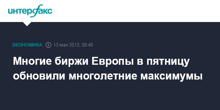 Многие биржи Европы в пятницу обновили многолетние максимумы