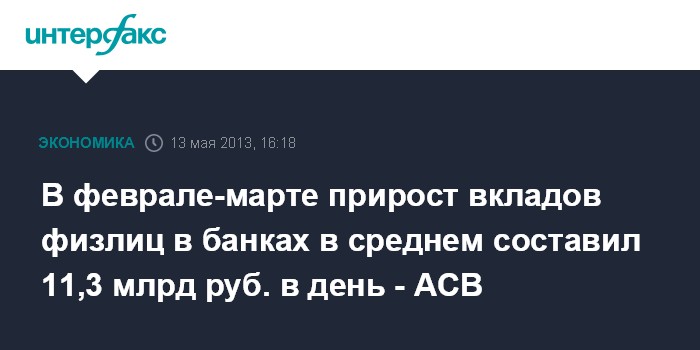 В феврале-марте прирост вкладов физлиц в банках в среднем составил 11,3 млрд руб. в день - АСВ