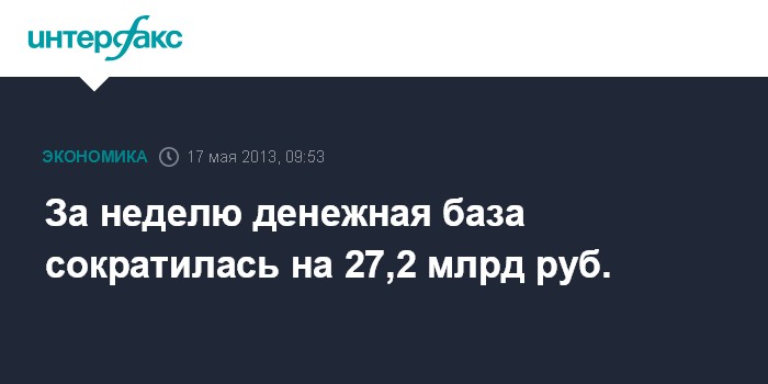 За неделю денежная база сократилась на 27,2 млрд руб.