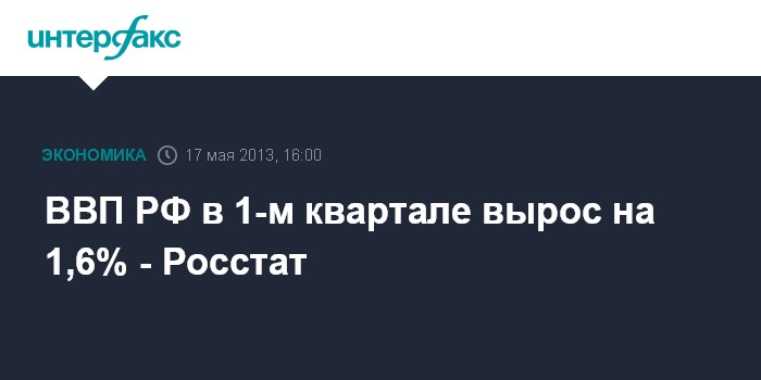17 мая. FINMARKET.RU - Объем валового внутреннего продукта в 1-м квартале 2013 года относительно соответствующего периода 2012 года вырос на 1,6%, свидетельствует предварительная оценка Федеральной службы госстатистки (Росстата).