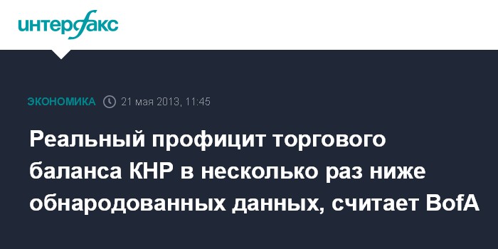21 мая. FINMARKET.RU - Положительное сальдо внешнеторгового баланса Китая в несколько раз ниже тех значений, которые были официально обнародованы Главным таможенным управлением страны с начала 2013 года, полагают аналитики Bank of America Corp. (BofA), чью оценку приводит Bloomberg.