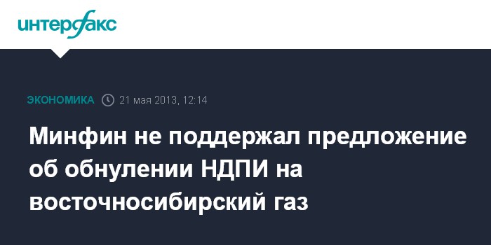 Москва. 21 мая. INTERFAX.RU - Минфин не поддержал предложение об обнулении НДПИ на газ для месторождений Восточной Сибири, сообщил замминистра финансов России Сергей Шаталов журналистам во вторник.