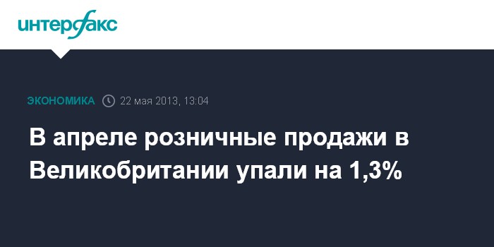 22 мая. FINMARKET.RU - В апреле 2013 года объем розничных продаж в Великобритании упал на 1,3% по сравнению с предыдущим месяцем, когда его снижение составило 0,6%, свидетельствуют данные Национального статистического управления (ONS) страны.