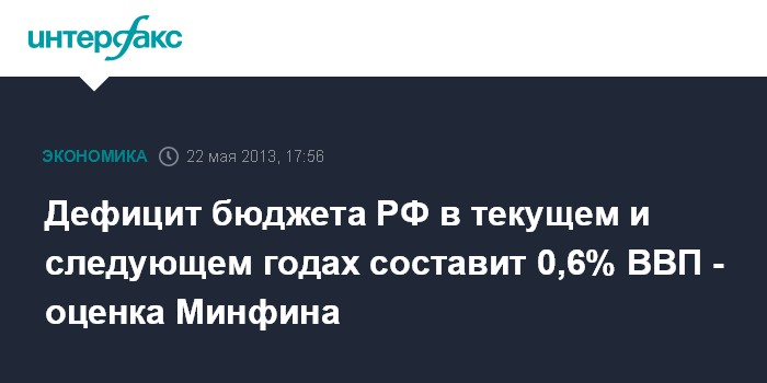 Дефицит бюджета РФ в текущем и следующем годах составит 0,6% ВВП - оценка Минфина