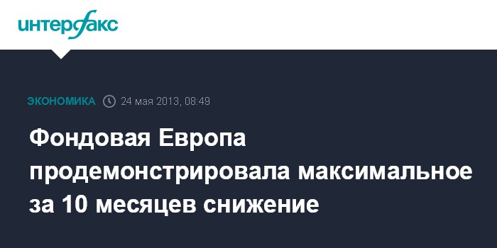 24 мая. FINMARKET.RU - Европейские фондовые площадки продемонстрировали вчера максимальное падение за 10 месяцев. Индексы упали более чем на 2% на слабых статданных из КНР, а также на сигналах планируемого сокращения Федеральной резервной системой (ФРС) объемов выкупа облигаций, сообщает агентство Bloomberg.