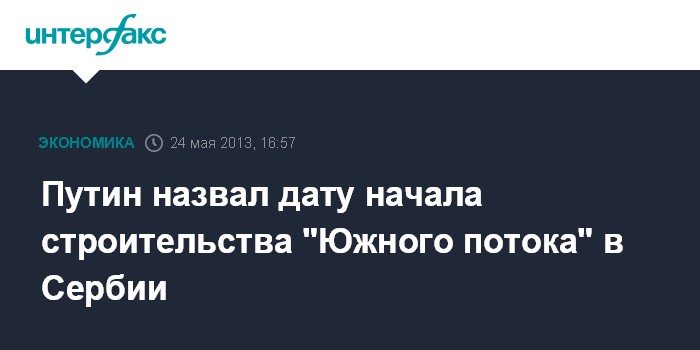 Сочи. 24 мая. INTERFAX.RU - Президент РФ Владимир Путин по итогам своих переговоров с сербским коллегой Томиславом Николичем рассказал о сроках начала строительства участка "Южного потока" в Сербии.