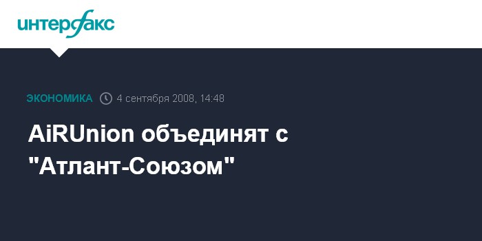 Москва. 4 сентября. INTERFAX.RU - Авиакомпании альянса AiRUnion будут объединены с компанией правительства Москвы "Атлант-Союз", которой будут переданы воздушный флот и маршрутная сеть альянса, сообщили "Интерфаксу" источники, знакомые с ситуацией.
