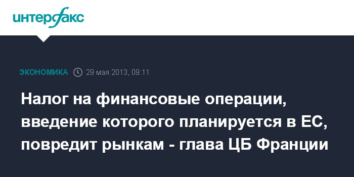 Налог на финансовые операции, введение которого планируется в ЕС, повредит рынкам - глава ЦБ Франции