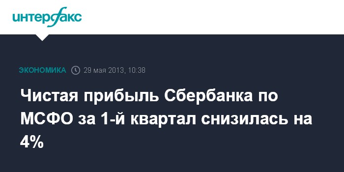 Чистая прибыль Сбербанка по МСФО за 1-й квартал снизилась на 4%