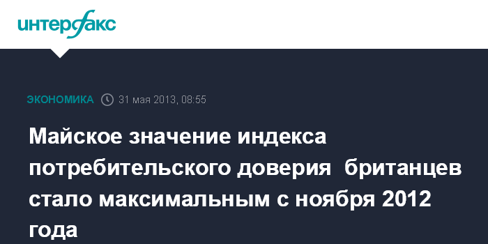 Майское значение индекса потребительского доверия британцев стало максимальным с ноября 2012 года