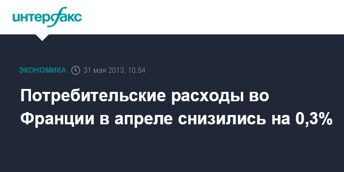 31 мая. FINMARKET.RU - Потребительские расходы во Франции в апреле 2013 года сократились на 0,3% относительно предыдущего месяца, когда их рост составлял 1,3%, свидетельствуют данные французского национального статистического института Insee.