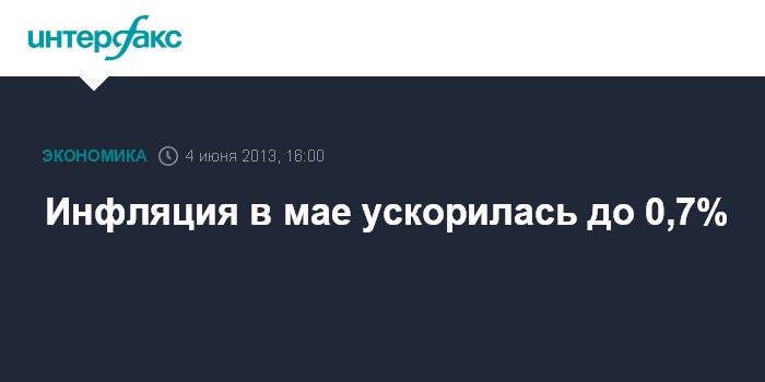 4 июня. FINMARKET.RU - Инфляция в России в мае 2013 года составила 0,7% после 0,5% в апреле, 0,3% в марте, 0,6% в феврале и 1% в январе, свидетельствуют данные Федеральной службы госстатистики (Росстата). В январе-мае потребительские цены выросли на 3,1%.