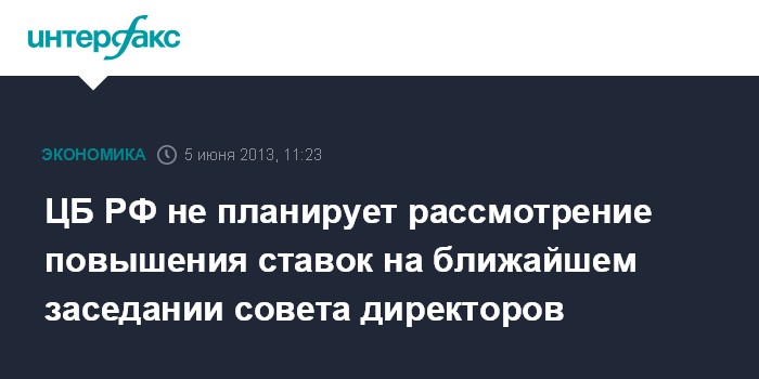 ЦБ РФ не планирует рассмотрение повышения ставок на ближайшем заседании совета директоров