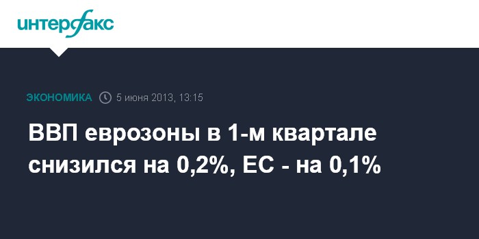 5 июня. FINMARKET.RU - Объем ВВП 17 государств еврозоны снизился в первом квартале 2013 года на 0,2% по сравнению с предыдущими тремя месяцами, когда было зафиксировано уменьшение на 0,6%, свидетельствуют окончательные данные Статистического управления Евросоюза.