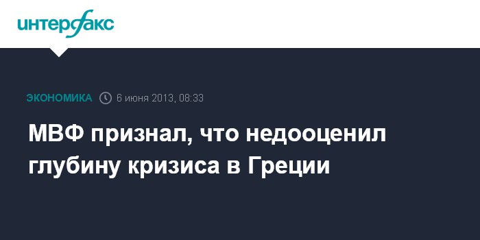 6 июня. FINMARKET.RU - Международный валютный фонд (МВФ) критически оценил программу помощи Греции. Фонд опубликовал на своем сайте самокритичный доклад, в котором анализируется трехлетний опыт финансирования Греции; его авторы делают вывод, что фонд, подписывая соглашение с Афинами в 2010 г., совершил ряд ошибок, в том числе недооценил глубину кризиса, в котором оказалась экономика страны.