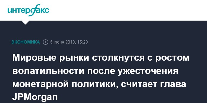 Мировые рынки столкнутся с ростом волатильности после ужесточения монетарной политики, считает глава JPMorgan