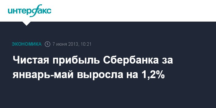 7 июня. FINMARKET.RU - Чистая прибыль Сбербанка по РСБУ за январь-май 2013 года выросла на 1,2% и составила 156,8 млрд руб. против 154,9 млрд руб. в январе-мае 2012 года. Прибыль выросла незначительно в результате роста расходов на резервы и снижения доходов от торговых операций на финансовых рынках, говорится в сообщении кредитной организации.